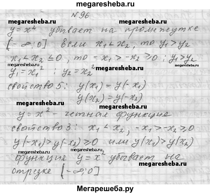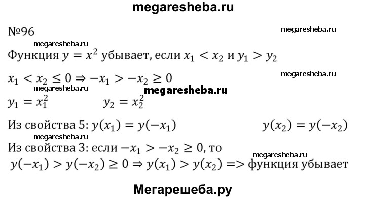 96. Покажите, что из свойств 3 и 5 функции у = х2 следует, что для неположительных значений х функция у = х2 убывает.