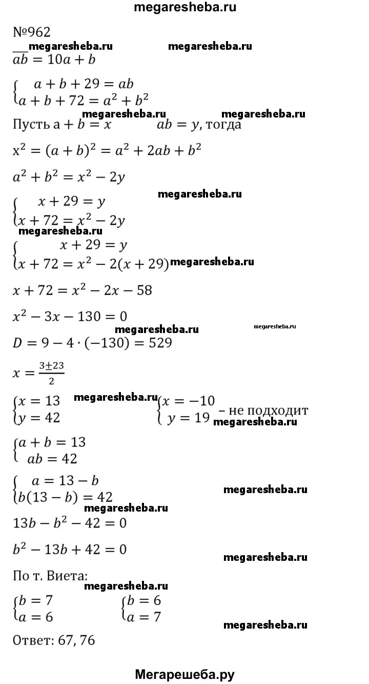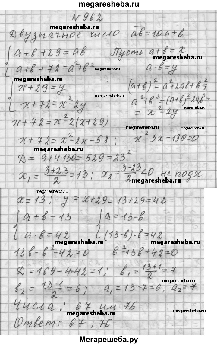 Подробный решебник (ГДЗ) по Алгебре за 8 (восьмой) класс - готовый ответ номер - 962. Авторы учебника: Никольский, Потапов, Решетников, Шевкин. Издательство: Просвещение 2015-2022.