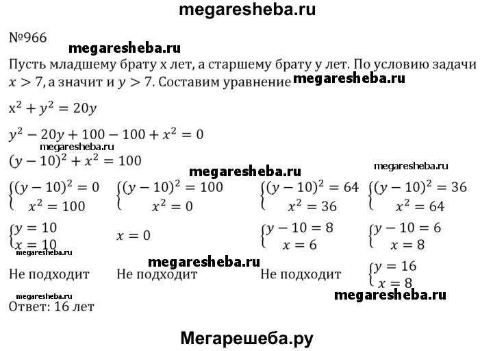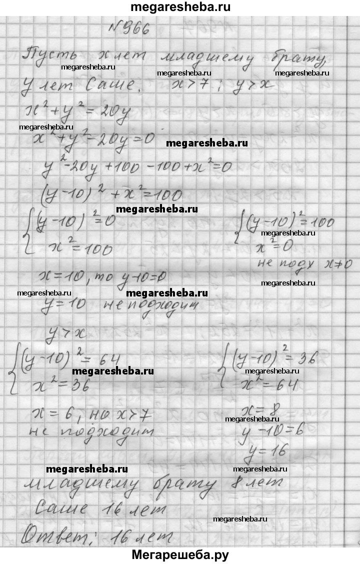 Подробный решебник (ГДЗ) по Алгебре за 8 (восьмой) класс - готовый ответ номер - 966. Авторы учебника: Никольский, Потапов, Решетников, Шевкин. Издательство: Просвещение 2015-2022.