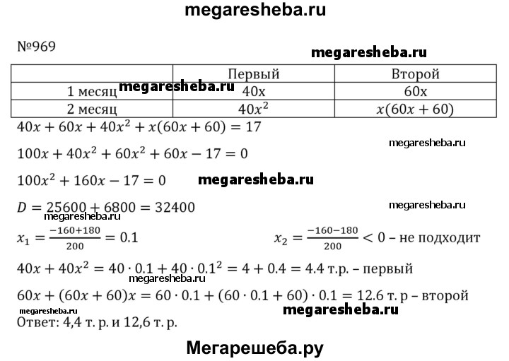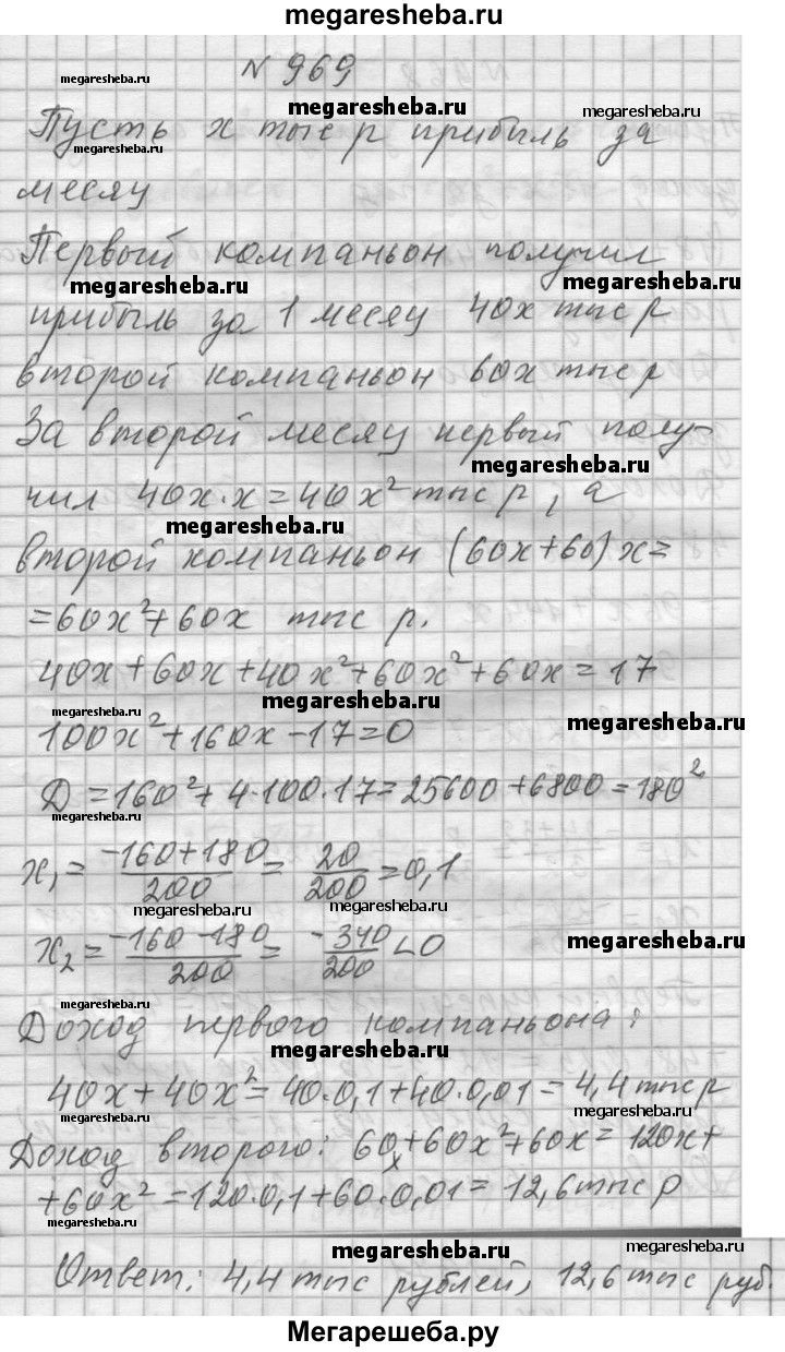 Подробный решебник (ГДЗ) по Алгебре за 8 (восьмой) класс - готовый ответ номер - 969. Авторы учебника: Никольский, Потапов, Решетников, Шевкин. Издательство: Просвещение 2015-2022.