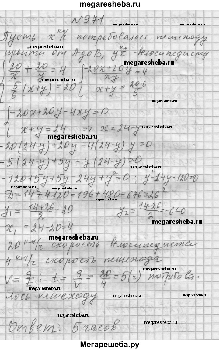 Подробный решебник (ГДЗ) по Алгебре за 8 (восьмой) класс - готовый ответ номер - 971. Авторы учебника: Никольский, Потапов, Решетников, Шевкин. Издательство: Просвещение 2015-2022.