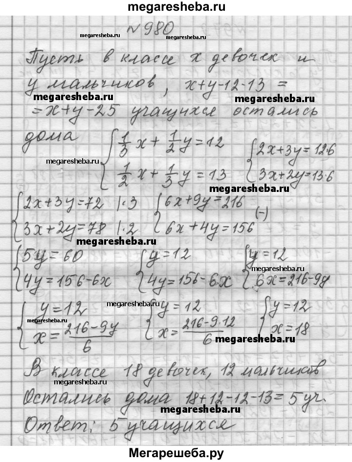 Подробный решебник (ГДЗ) по Алгебре за 8 (восьмой) класс - готовый ответ номер - 980. Авторы учебника: Никольский, Потапов, Решетников, Шевкин. Издательство: Просвещение 2015-2022.