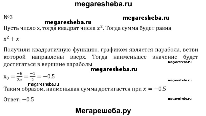 3. Найдите число, которое даёт наименьшую сумму со своим квадратом.