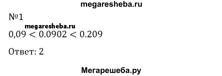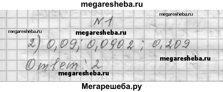 1. Расположите в порядке возрастания числа: 0,0902; 0,09; 0,209. 1) 0,209; 0,0902; 0,09 2) 0,09; 0,0902; 0,209 3) 0,09; 0,209; 0,0902 4) 0,0902; 0,09; 0,209
