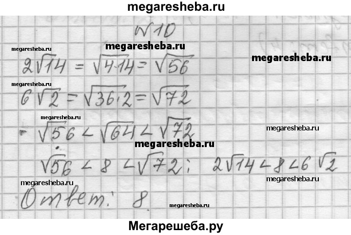 10. Какое целое число расположено между числами 2√14 и 6√2?