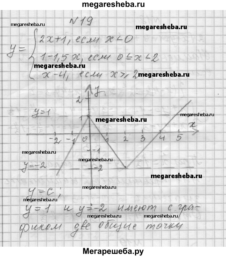 19. Постройте график функции и определите, при каких значениях с прямая у = с имеет с графиком ровно две общие точки.