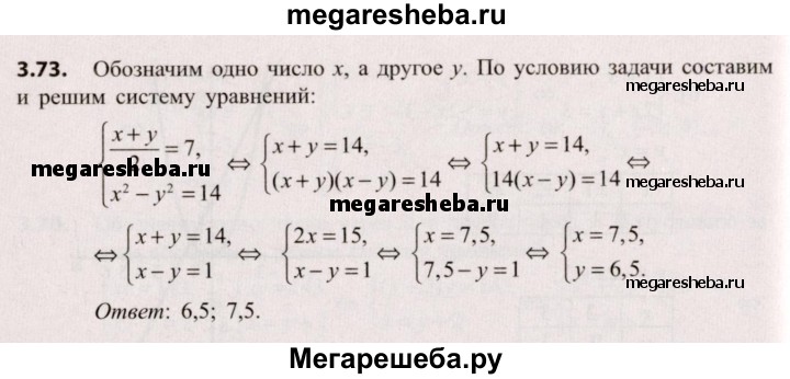Подробный решебник (ГДЗ) по Алгебре за 9 (девятый) класс - готовый ответ глава 3 упражнение - 3.73. Авторы учебника: Арефьева, Пирютко. Издательство: Народная асвета 2019.
