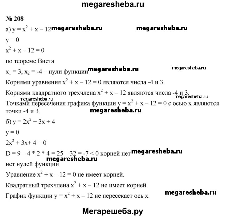 Подробный решебник (ГДЗ) по Алгебре за 9 (девятый) класс - готовый ответ глава 2 упражнение - 2.14 (208). Авторы учебника: Дорофеев, Суворова, Бунимович, Базовый уровень. Издательство: Просвещение 2015-2024.