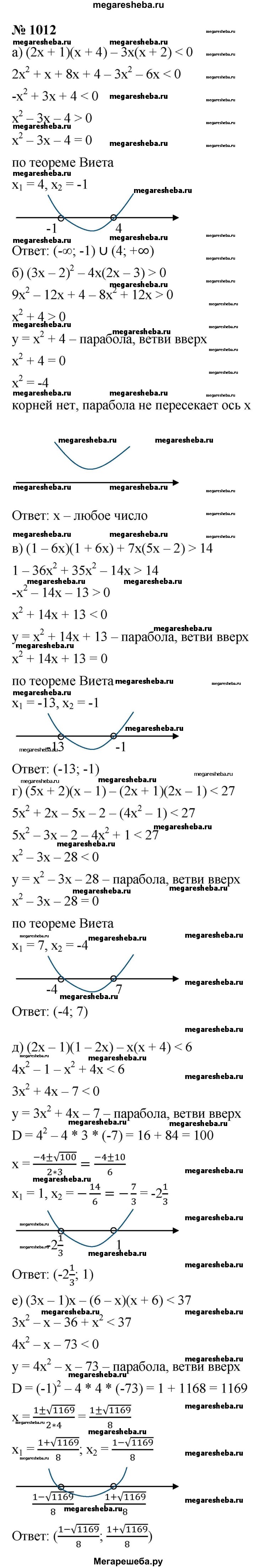 Подробный решебник (ГДЗ) по Алгебре за 9 (девятый) класс - готовый ответ номер - 1012. Авторы учебника: Макарычев, Миндюк, Нешков, Суворова, Базовый уровень. Издательство: Просвещение 2015-2024.