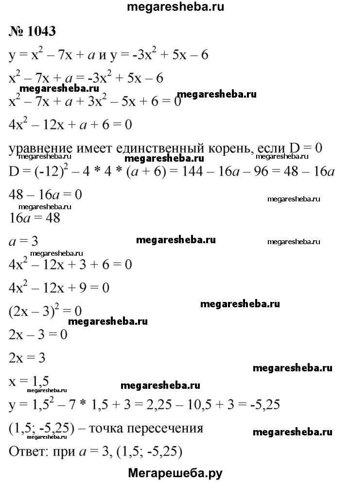 Подробный решебник (ГДЗ) по Алгебре за 9 (девятый) класс - готовый ответ номер - 1043. Авторы учебника: Макарычев, Миндюк, Нешков, Суворова, Базовый уровень. Издательство: Просвещение 2015-2024.