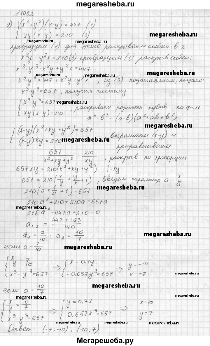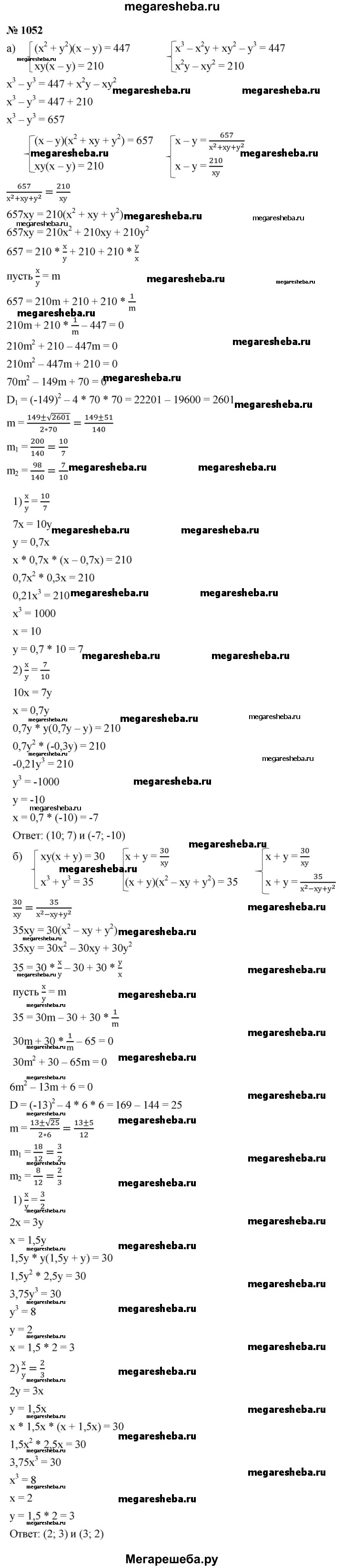ГДЗ по алгебре 9 класс Макарычев Базовый уровень номер - 1052