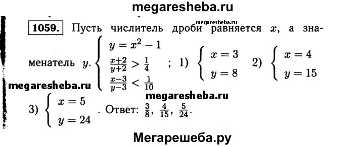 Подробный решебник (ГДЗ) по Алгебре за 9 (девятый) класс - готовый ответ номер - 1059. Авторы учебника: Макарычев, Миндюк, Нешков, Суворова, Базовый уровень. Издательство: Просвещение 2015-2024.