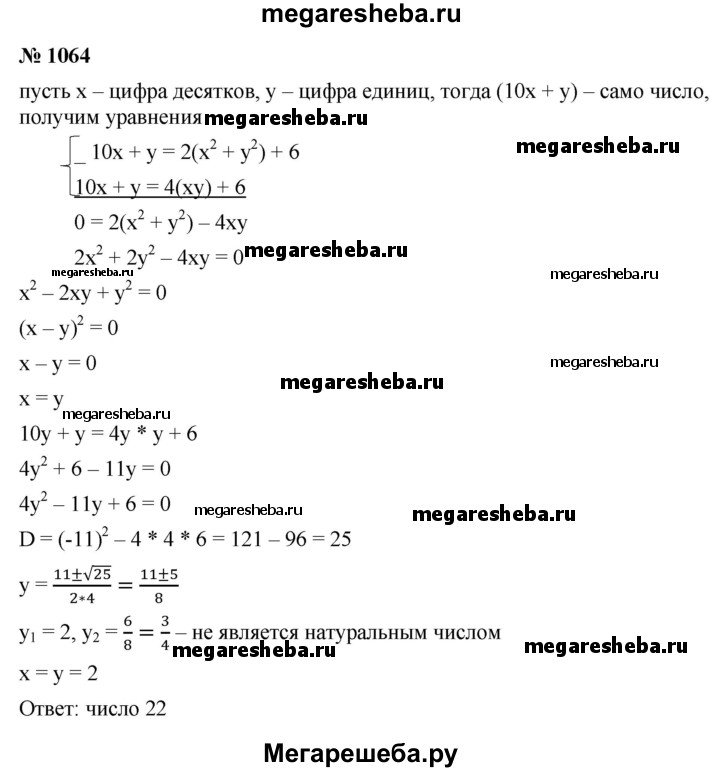 Подробный решебник (ГДЗ) по Алгебре за 9 (девятый) класс - готовый ответ номер - 1064. Авторы учебника: Макарычев, Миндюк, Нешков, Суворова, Базовый уровень. Издательство: Просвещение 2015-2024.