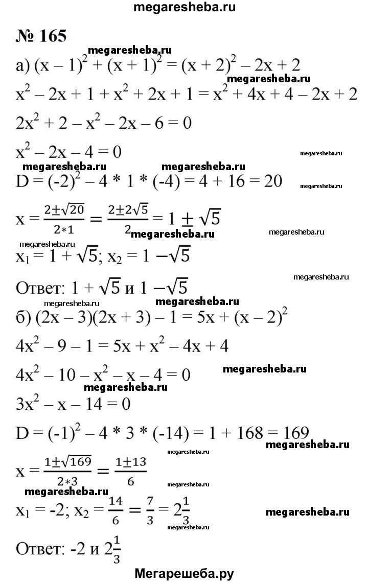 Подробный решебник (ГДЗ) по Алгебре за 9 (девятый) класс - готовый ответ номер - 165. Авторы учебника: Макарычев, Миндюк, Нешков, Суворова, Базовый уровень. Издательство: Просвещение 2015-2024.