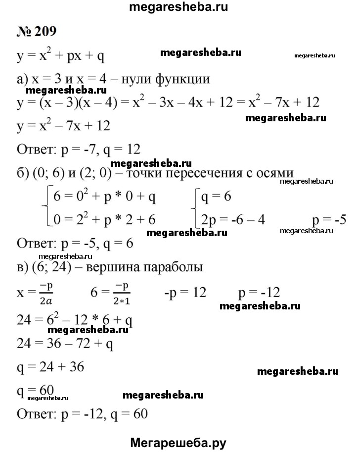 ГДЗ по алгебре 9 класс Макарычев Базовый уровень номер - 209