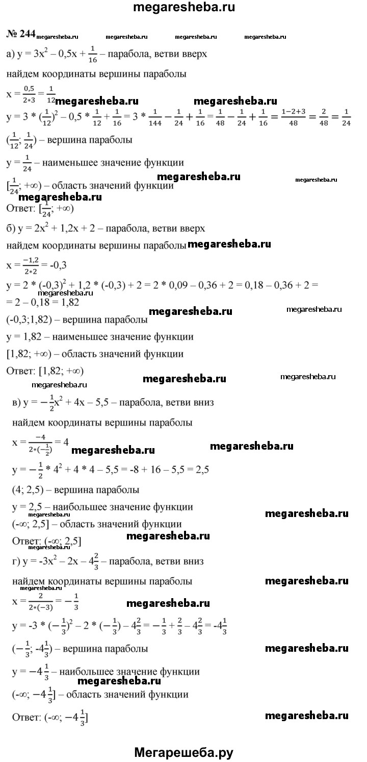 ГДЗ по алгебре 9 класс Макарычев Базовый уровень номер - 244
