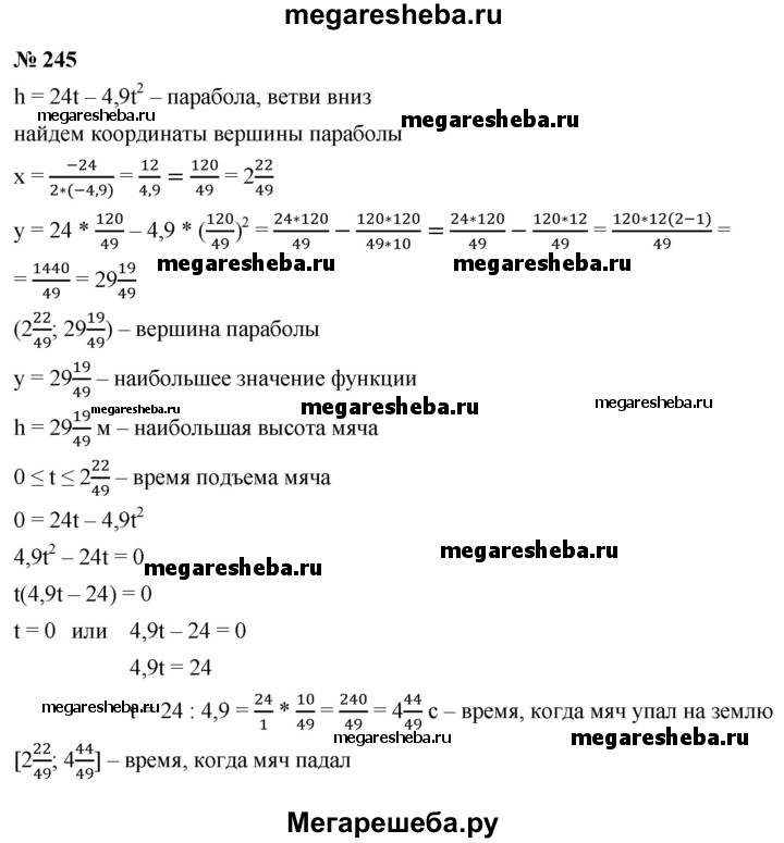 Подробный решебник (ГДЗ) по Алгебре за 9 (девятый) класс - готовый ответ номер - 245. Авторы учебника: Макарычев, Миндюк, Нешков, Суворова, Базовый уровень. Издательство: Просвещение 2015-2024.