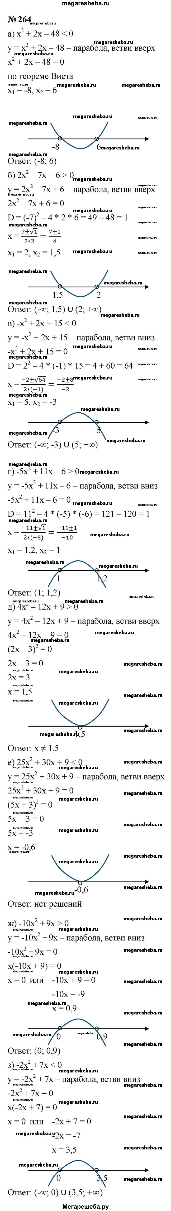 Подробный решебник (ГДЗ) по Алгебре за 9 (девятый) класс - готовый ответ номер - 264. Авторы учебника: Макарычев, Миндюк, Нешков, Суворова, Базовый уровень. Издательство: Просвещение 2015-2024.