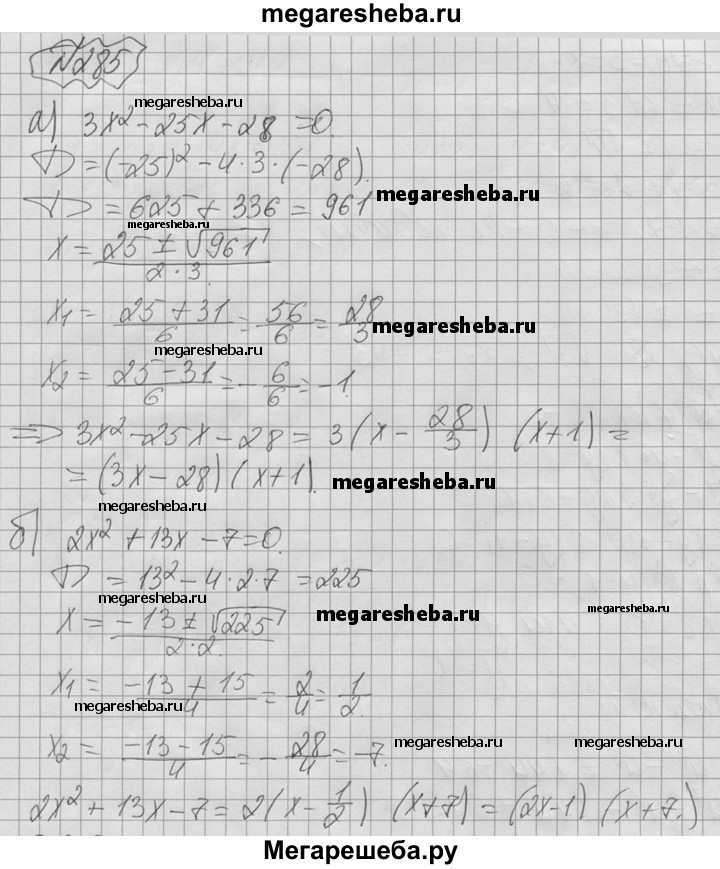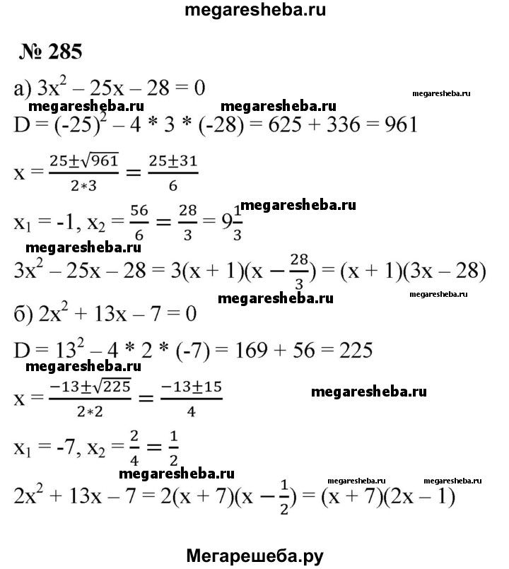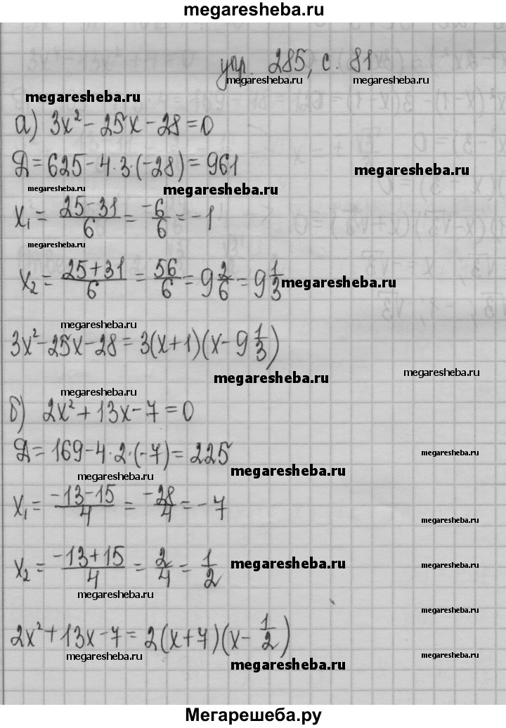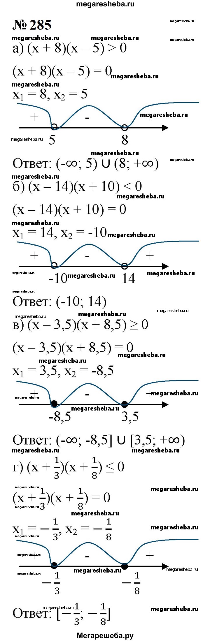Подробный решебник (ГДЗ) по Алгебре за 9 (девятый) класс - готовый ответ номер - 285. Авторы учебника: Макарычев, Миндюк, Нешков, Суворова, Базовый уровень. Издательство: Просвещение 2015-2024.