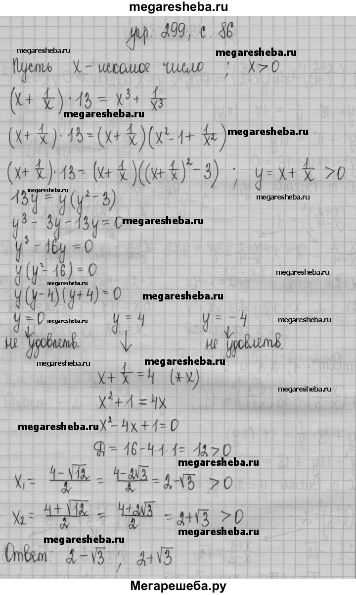 Подробный решебник (ГДЗ) по Алгебре за 9 (девятый) класс - готовый ответ номер - 299. Авторы учебника: Макарычев, Миндюк, Нешков, Суворова, Базовый уровень. Издательство: Просвещение 2015-2024.