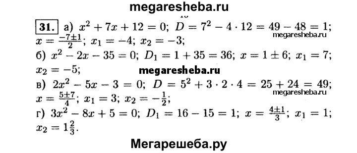 Подробный решебник (ГДЗ) по Алгебре за 9 (девятый) класс - готовый ответ номер - 31. Авторы учебника: Макарычев, Миндюк, Нешков, Суворова, Базовый уровень. Издательство: Просвещение 2015-2024.