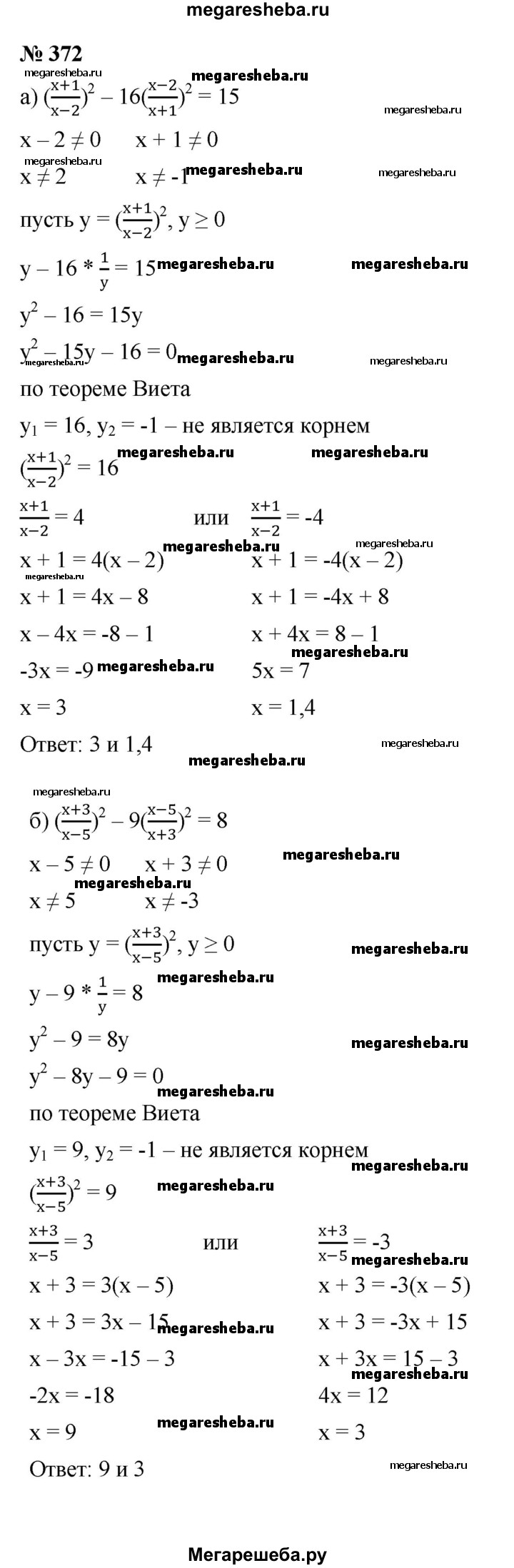 Подробный решебник (ГДЗ) по Алгебре за 9 (девятый) класс - готовый ответ номер - 372. Авторы учебника: Макарычев, Миндюк, Нешков, Суворова, Базовый уровень. Издательство: Просвещение 2015-2024.