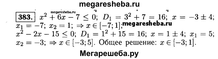 Подробный решебник (ГДЗ) по Алгебре за 9 (девятый) класс - готовый ответ номер - 383. Авторы учебника: Макарычев, Миндюк, Нешков, Суворова, Базовый уровень. Издательство: Просвещение 2015-2024.