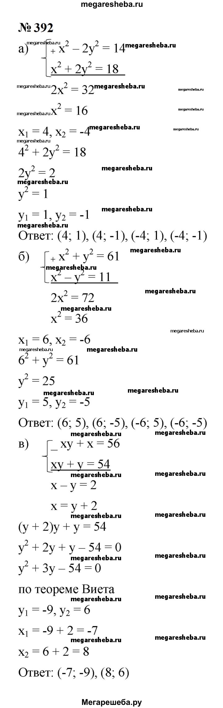 Подробный решебник (ГДЗ) по Алгебре за 9 (девятый) класс - готовый ответ номер - 392. Авторы учебника: Макарычев, Миндюк, Нешков, Суворова, Базовый уровень. Издательство: Просвещение 2015-2024.