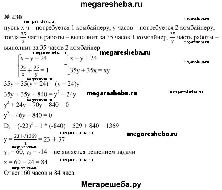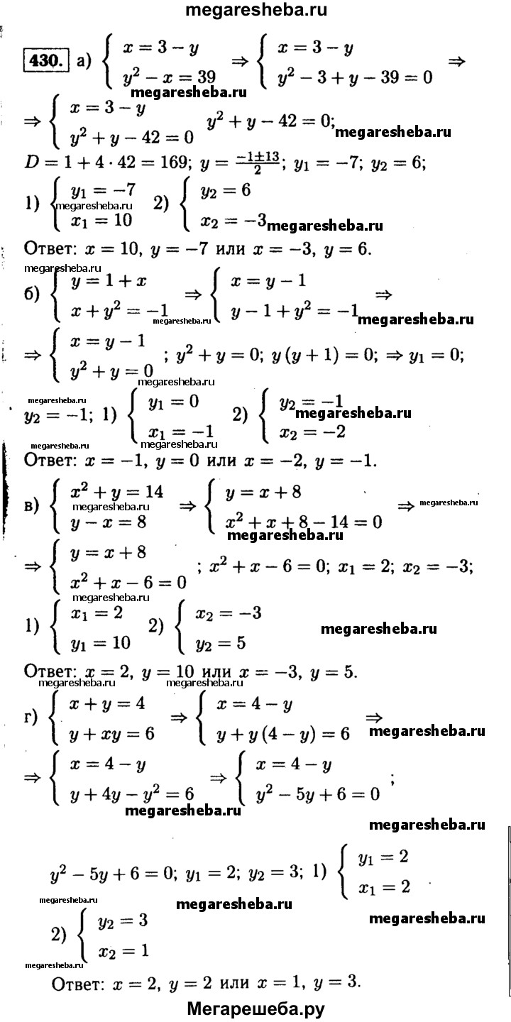 Подробный решебник (ГДЗ) по Алгебре за 9 (девятый) класс - готовый ответ номер - 430. Авторы учебника: Макарычев, Миндюк, Нешков, Суворова, Базовый уровень. Издательство: Просвещение 2015-2024.