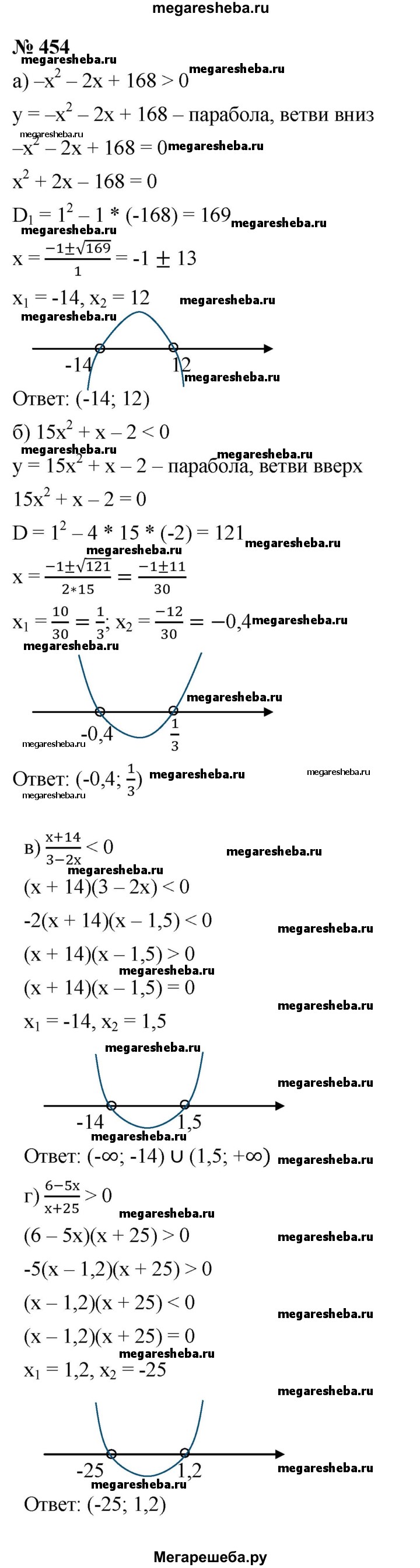 Подробный решебник (ГДЗ) по Алгебре за 9 (девятый) класс - готовый ответ номер - 454. Авторы учебника: Макарычев, Миндюк, Нешков, Суворова, Базовый уровень. Издательство: Просвещение 2015-2024.