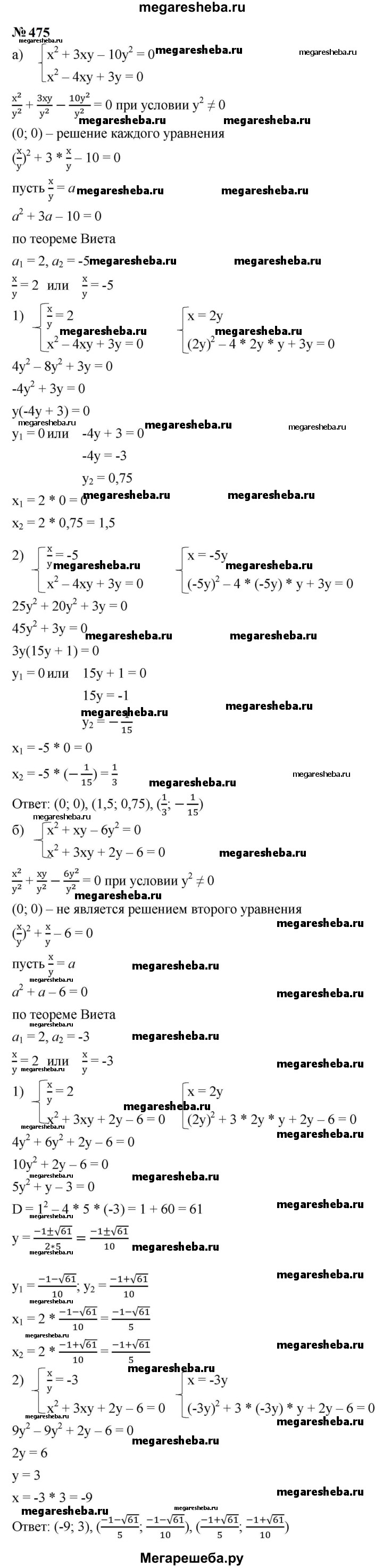 Подробный решебник (ГДЗ) по Алгебре за 9 (девятый) класс - готовый ответ номер - 475. Авторы учебника: Макарычев, Миндюк, Нешков, Суворова, Базовый уровень. Издательство: Просвещение 2015-2024.