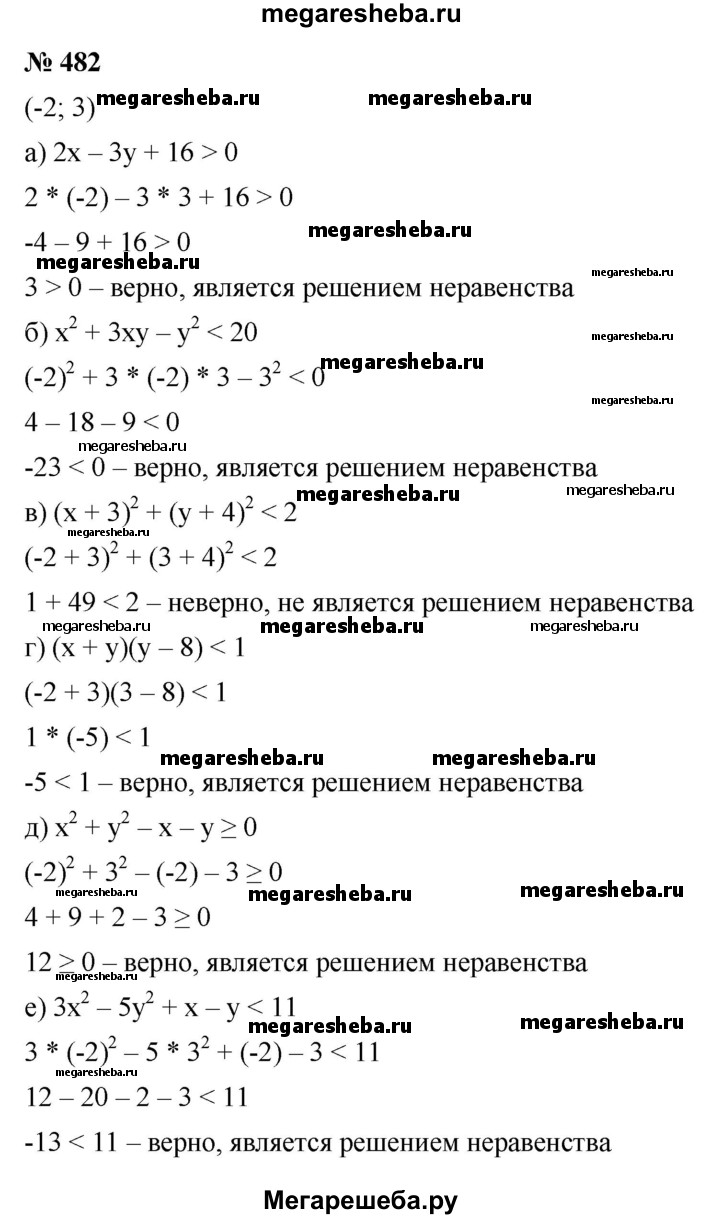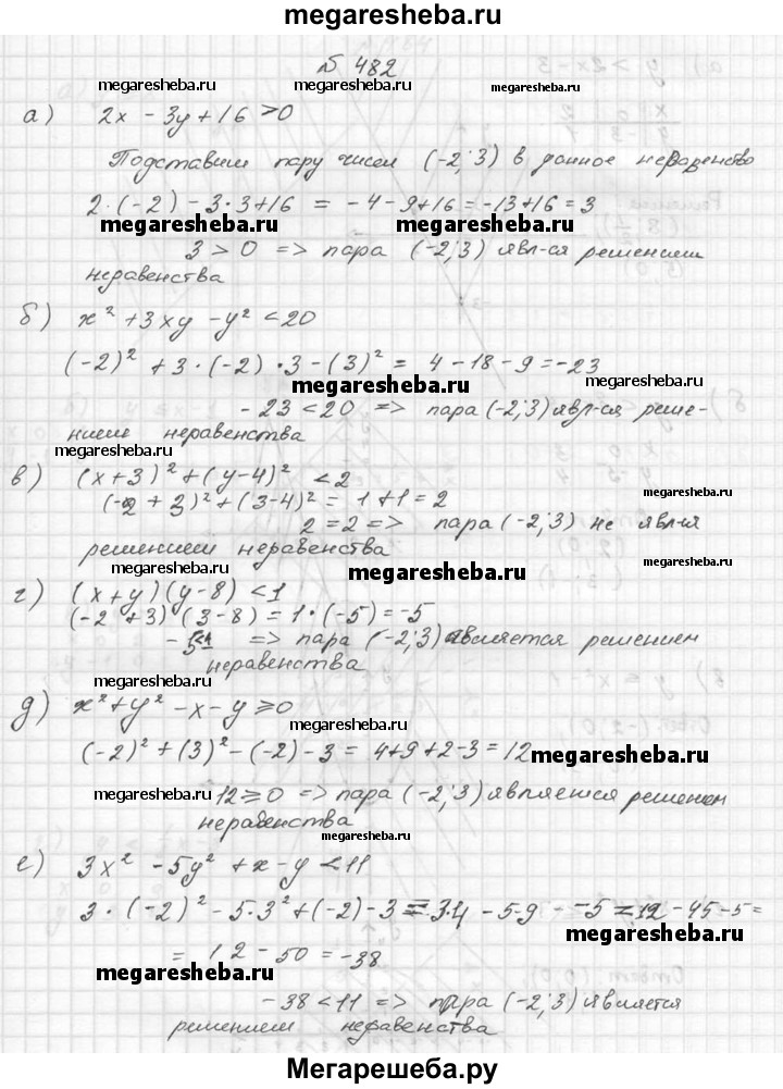 Подробный решебник (ГДЗ) по Алгебре за 9 (девятый) класс - готовый ответ номер - 482. Авторы учебника: Макарычев, Миндюк, Нешков, Суворова, Базовый уровень. Издательство: Просвещение 2015-2024.