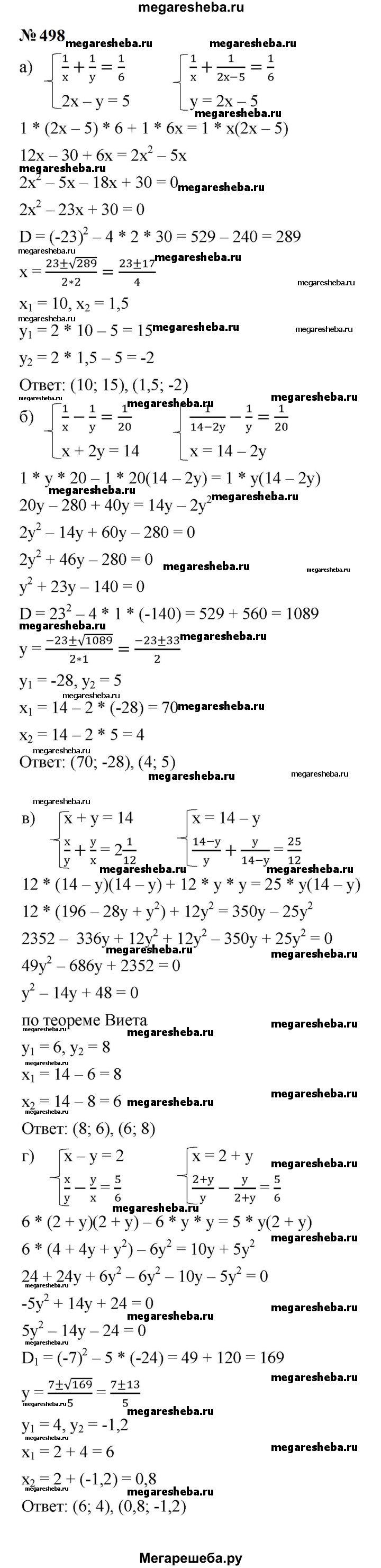 Подробный решебник (ГДЗ) по Алгебре за 9 (девятый) класс - готовый ответ номер - 498. Авторы учебника: Макарычев, Миндюк, Нешков, Суворова, Базовый уровень. Издательство: Просвещение 2015-2024.