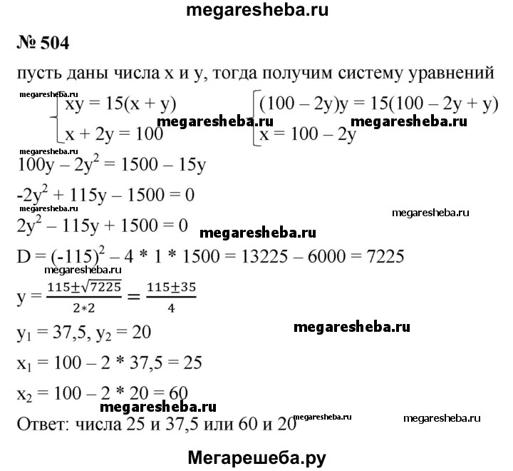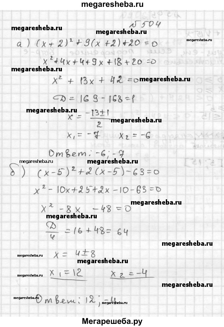 Подробный решебник (ГДЗ) по Алгебре за 9 (девятый) класс - готовый ответ номер - 504. Авторы учебника: Макарычев, Миндюк, Нешков, Суворова, Базовый уровень. Издательство: Просвещение 2015-2024.