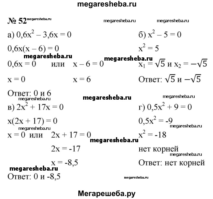 Подробный решебник (ГДЗ) по Алгебре за 9 (девятый) класс - готовый ответ номер - 52. Авторы учебника: Макарычев, Миндюк, Нешков, Суворова, Базовый уровень. Издательство: Просвещение 2015-2024.