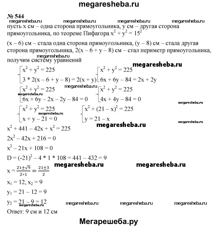 Подробный решебник (ГДЗ) по Алгебре за 9 (девятый) класс - готовый ответ номер - 544. Авторы учебника: Макарычев, Миндюк, Нешков, Суворова, Базовый уровень. Издательство: Просвещение 2015-2024.