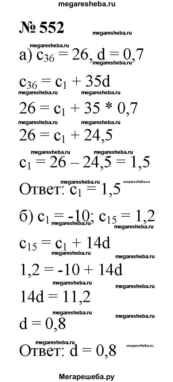 Подробный решебник (ГДЗ) по Алгебре за 9 (девятый) класс - готовый ответ номер - 552. Авторы учебника: Макарычев, Миндюк, Нешков, Суворова, Базовый уровень. Издательство: Просвещение 2015-2024.
