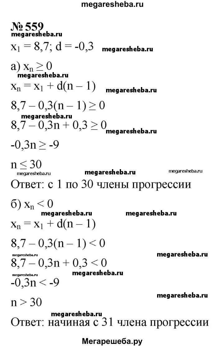 Подробный решебник (ГДЗ) по Алгебре за 9 (девятый) класс - готовый ответ номер - 559. Авторы учебника: Макарычев, Миндюк, Нешков, Суворова, Базовый уровень. Издательство: Просвещение 2015-2024.