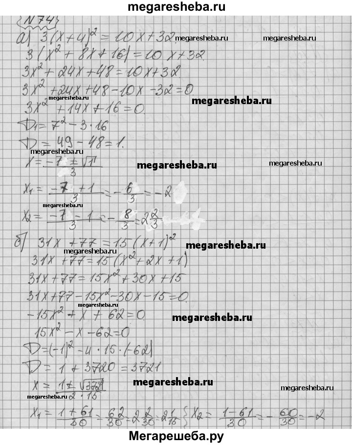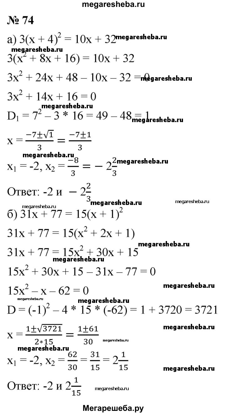Подробный решебник (ГДЗ) по Алгебре за 9 (девятый) класс - готовый ответ номер - 74. Авторы учебника: Макарычев, Миндюк, Нешков, Суворова, Базовый уровень. Издательство: Просвещение 2015-2024.