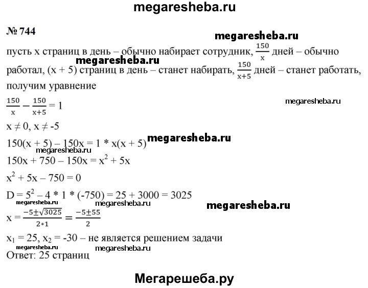 Подробный решебник (ГДЗ) по Алгебре за 9 (девятый) класс - готовый ответ номер - 744. Авторы учебника: Макарычев, Миндюк, Нешков, Суворова, Базовый уровень. Издательство: Просвещение 2015-2024.