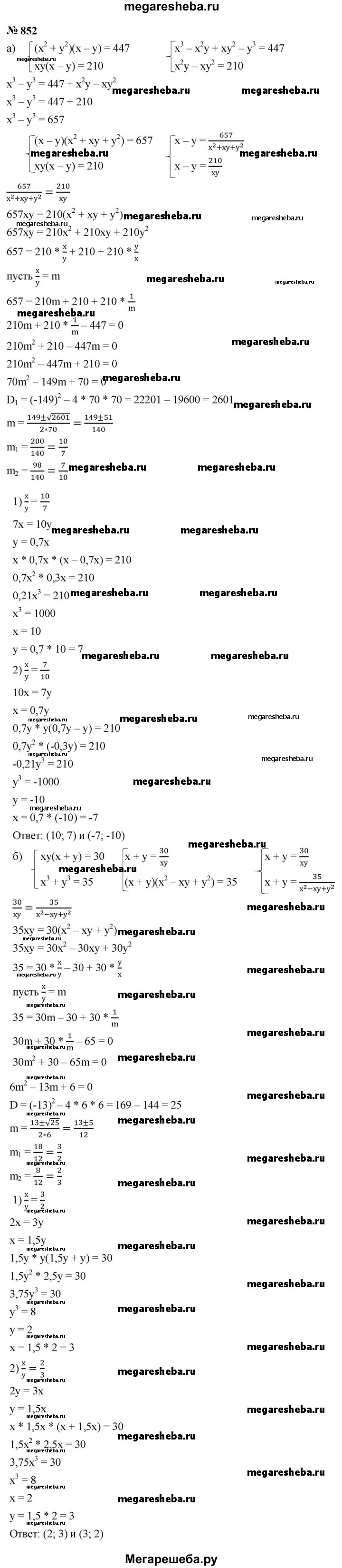 Подробный решебник (ГДЗ) по Алгебре за 9 (девятый) класс - готовый ответ номер - 852. Авторы учебника: Макарычев, Миндюк, Нешков, Суворова, Базовый уровень. Издательство: Просвещение 2015-2024.