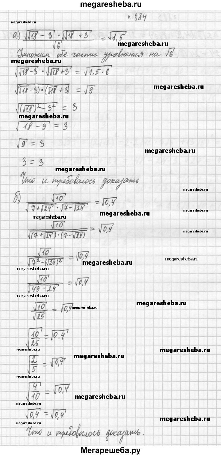 Подробный решебник (ГДЗ) по Алгебре за 9 (девятый) класс - готовый ответ номер - 884. Авторы учебника: Макарычев, Миндюк, Нешков, Суворова, Базовый уровень. Издательство: Просвещение 2015-2024.
