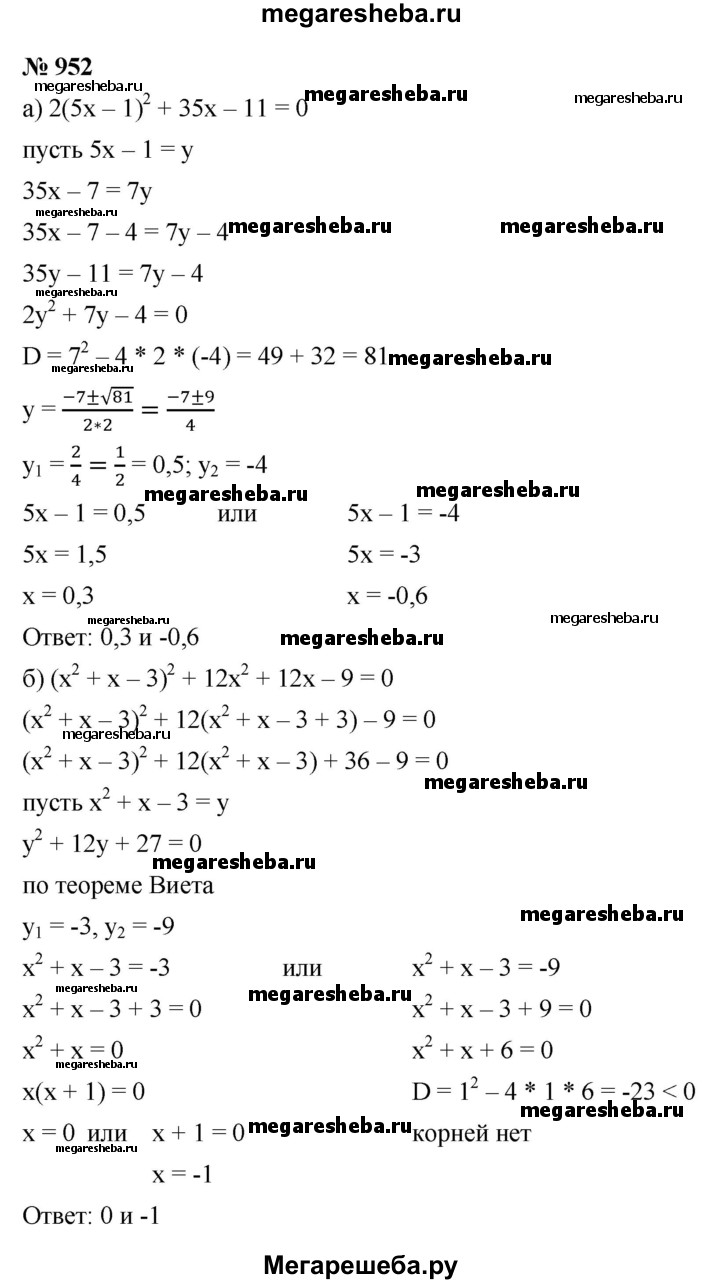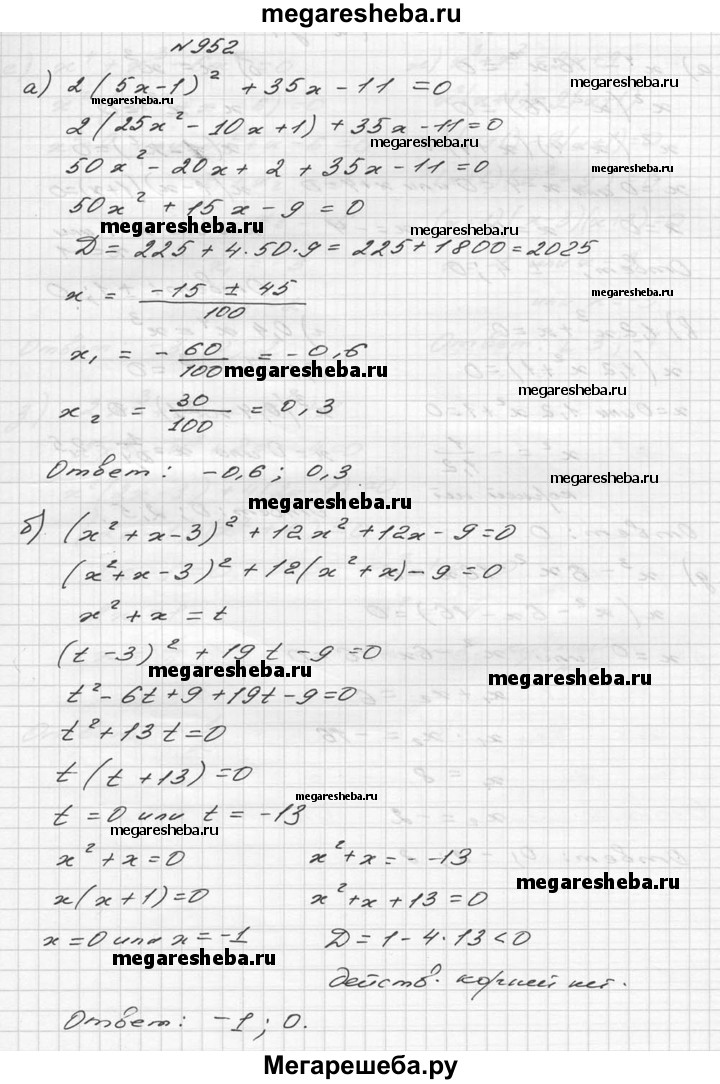Подробный решебник (ГДЗ) по Алгебре за 9 (девятый) класс - готовый ответ номер - 952. Авторы учебника: Макарычев, Миндюк, Нешков, Суворова, Базовый уровень. Издательство: Просвещение 2015-2024.