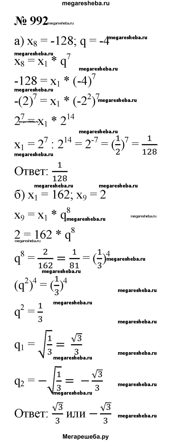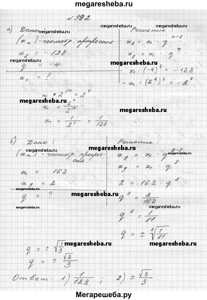 ГДЗ по алгебре 9 класс Макарычев Базовый уровень номер - 992