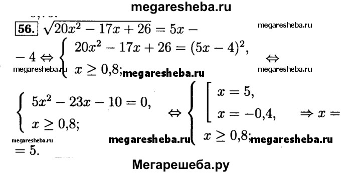 Подробный решебник (ГДЗ) по Алгебре за 9 (девятый) класс Учебник, Задачник - готовый ответ итоговое повторение уравнения и системы уравнений - 56. Авторы учебника: Мордкович, Семенов, Базовый уровень. Издательство: Мнемозина 2015-2019.