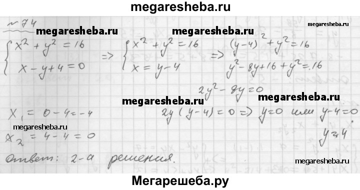 Подробный решебник (ГДЗ) по Алгебре за 9 (девятый) класс Учебник, Задачник - готовый ответ итоговое повторение уравнения и системы уравнений - 74. Авторы учебника: Мордкович, Семенов, Базовый уровень. Издательство: Мнемозина 2015-2019.