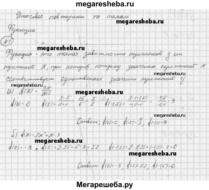 ГДЗ по алгебре 9 класс Макарычев Дидактические материалы итоговое повторение функции - 1