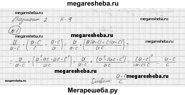 Подробный решебник (ГДЗ) по Алгебре за 9 (девятый) класс Дидактические материалы - готовый ответ контрольная работа вариант 2 К-9 - 1. Авторы учебника: Макарычев, Миндюк, Крайнева. Издательство: Просвещение 2015.