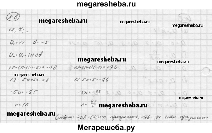 Подробный решебник (ГДЗ) по Алгебре за 9 (девятый) класс Дидактические материалы - готовый ответ итоговое повторение арифметическая и геометрическая прогрессии - 6. Авторы учебника: Макарычев, Миндюк, Крайнева. Издательство: Просвещение 2015.