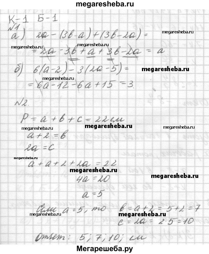 ГДЗ по алгебре 7 класс Ершова самостоятельные и контрольные работы алгебра контрольная работа К-1 - Б1